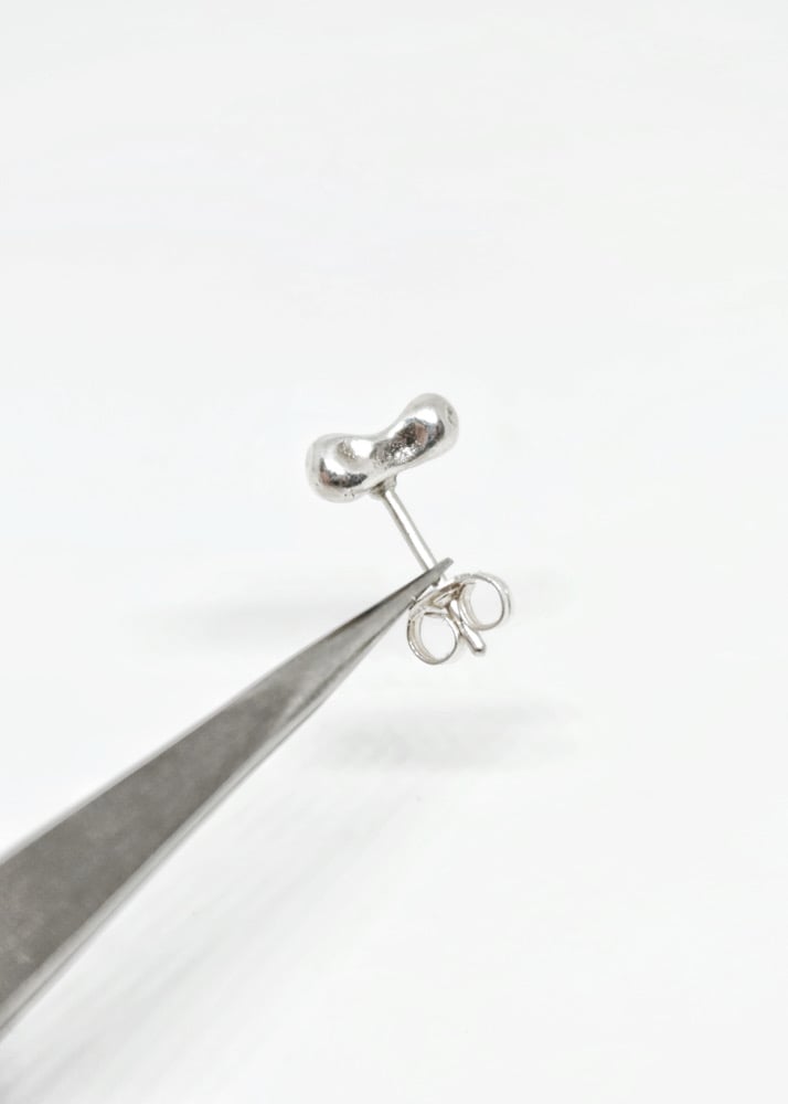 FABRICATED FROM RECYCLED 925 STERLING SILVER THROUGH A CASTING PROCESS THAT YIELDS UNIQUE GEOMETRIC VARIATIONS. EACH UNIT IS FITTED WITH 925 STERLING SILVER FINDINGS FOR DURABILITY AND CONDUCTIVITY.